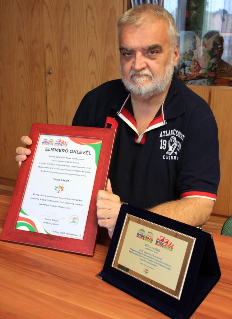 A város képviseletében Végh László polgármester vehette át Paskuj Mátyás versenyigazgatótól azt az elismerő oklevelet, amelyet a lebonyolítás során nyújtott támogatásért kapott Sümeg. Természetesen Papp Imre várkapitány, illetve Sáska és Zalahaláp polgármestere is hasonló elismerésben részesült, mivel a tájékozódási futó TrailO Mozgássérült Világbajnokság magyarországi szakasza ezeken a településeken zajlott. A várkapitány az ünnepélyes megnyitónak és az eredményhirdetésnek is helyszín biztosított a lovagi arénában.