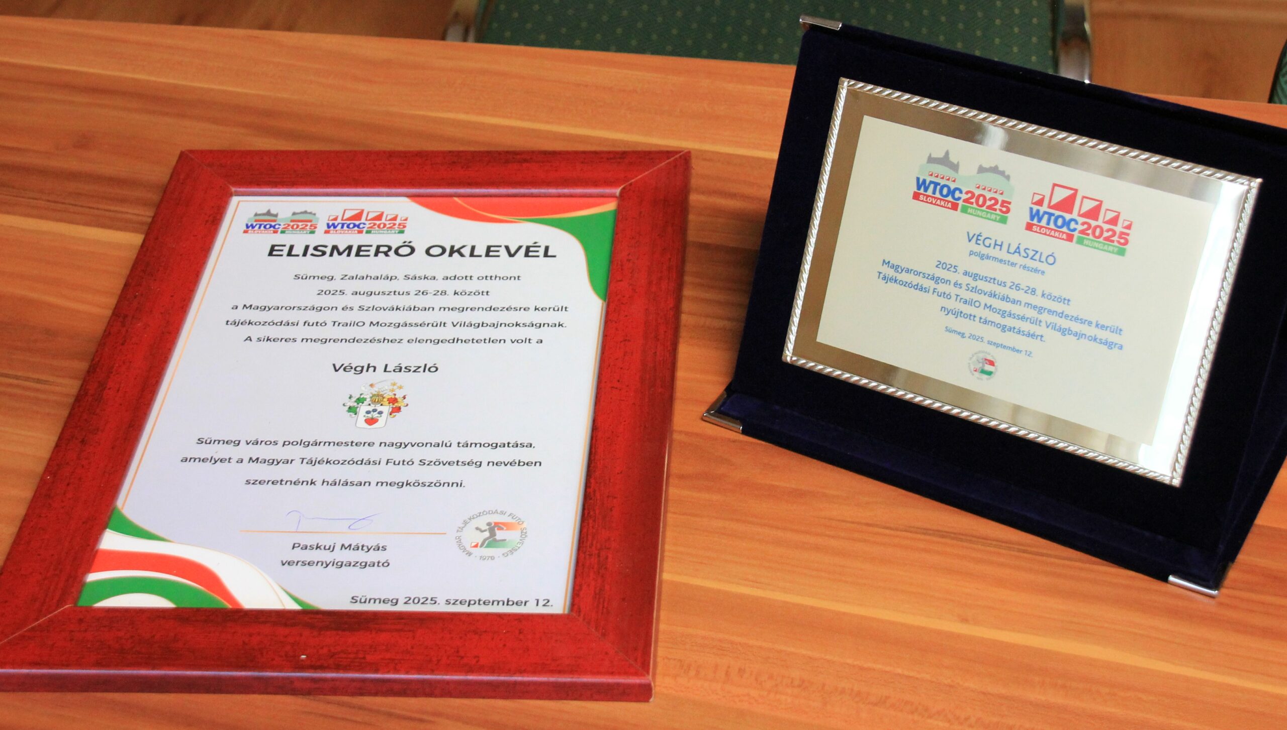A város képviseletében Végh László polgármester vehette át Paskuj Mátyás versenyigazgatótól azt az elismerő oklevelet, amelyet a lebonyolítás során nyújtott támogatásért kapott Sümeg. Természetesen Papp Imre várkapitány, illetve Sáska és Zalahaláp polgármestere is hasonló elismerésben részesült, mivel a tájékozódási futó TrailO Mozgássérült Világbajnokság magyarországi szakasza ezeken a településeken zajlott. A várkapitány az ünnepélyes megnyitónak és az eredményhirdetésnek is helyszín biztosított a lovagi arénában.