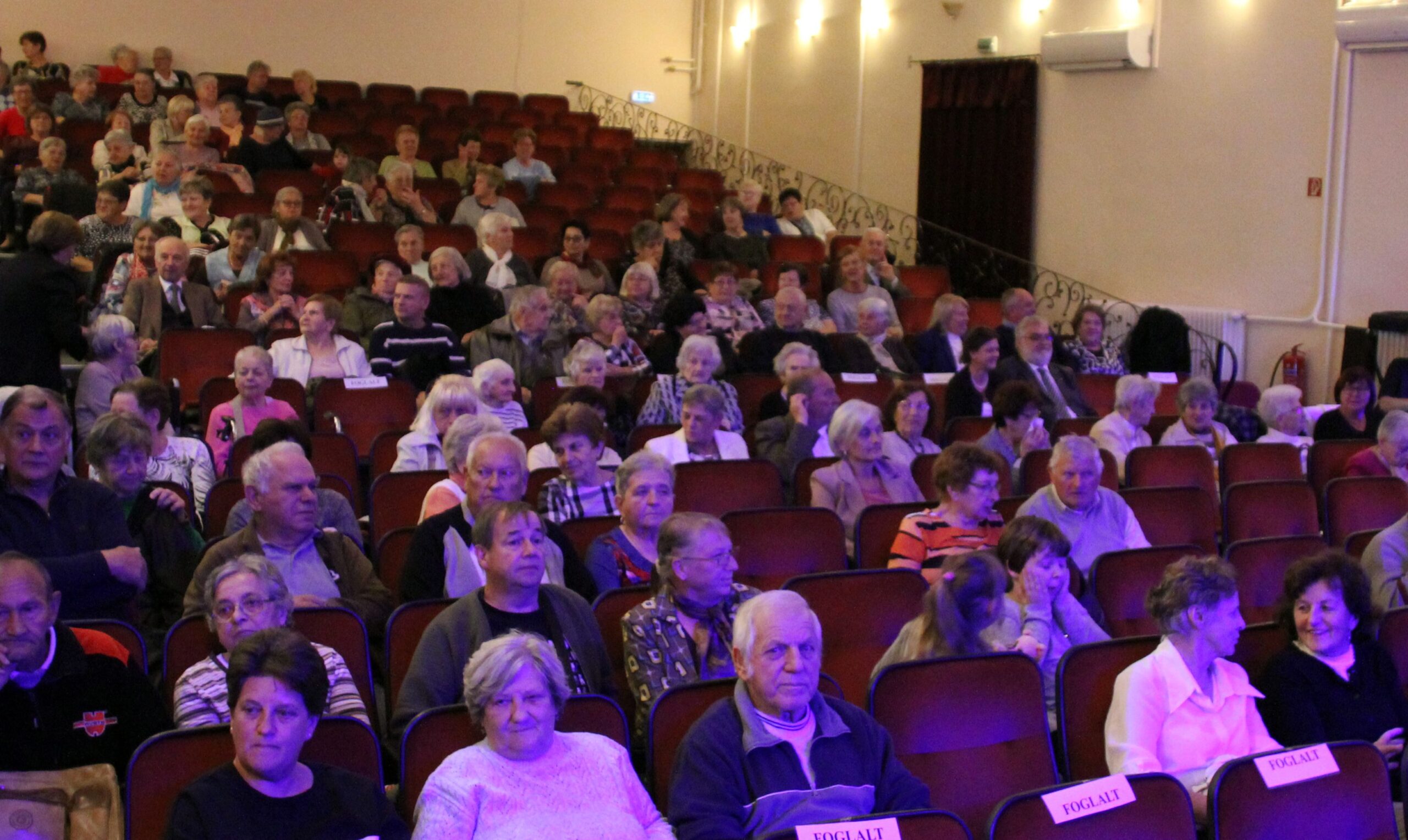 A polgármester köszöntője után lépett a színpadra Soltész Rezső, aki a Szóljon hangosan az ének című, kifejezetten erre az alkalomra összeállított műsorával szórakoztatta a Kisfaludy Sándor Művelődési Központban a szép számú közönséget. A rendezvényen a Napfény Segítő Központ szervezésében köszöntötték az arany- és gyémántlakodalmasokat.